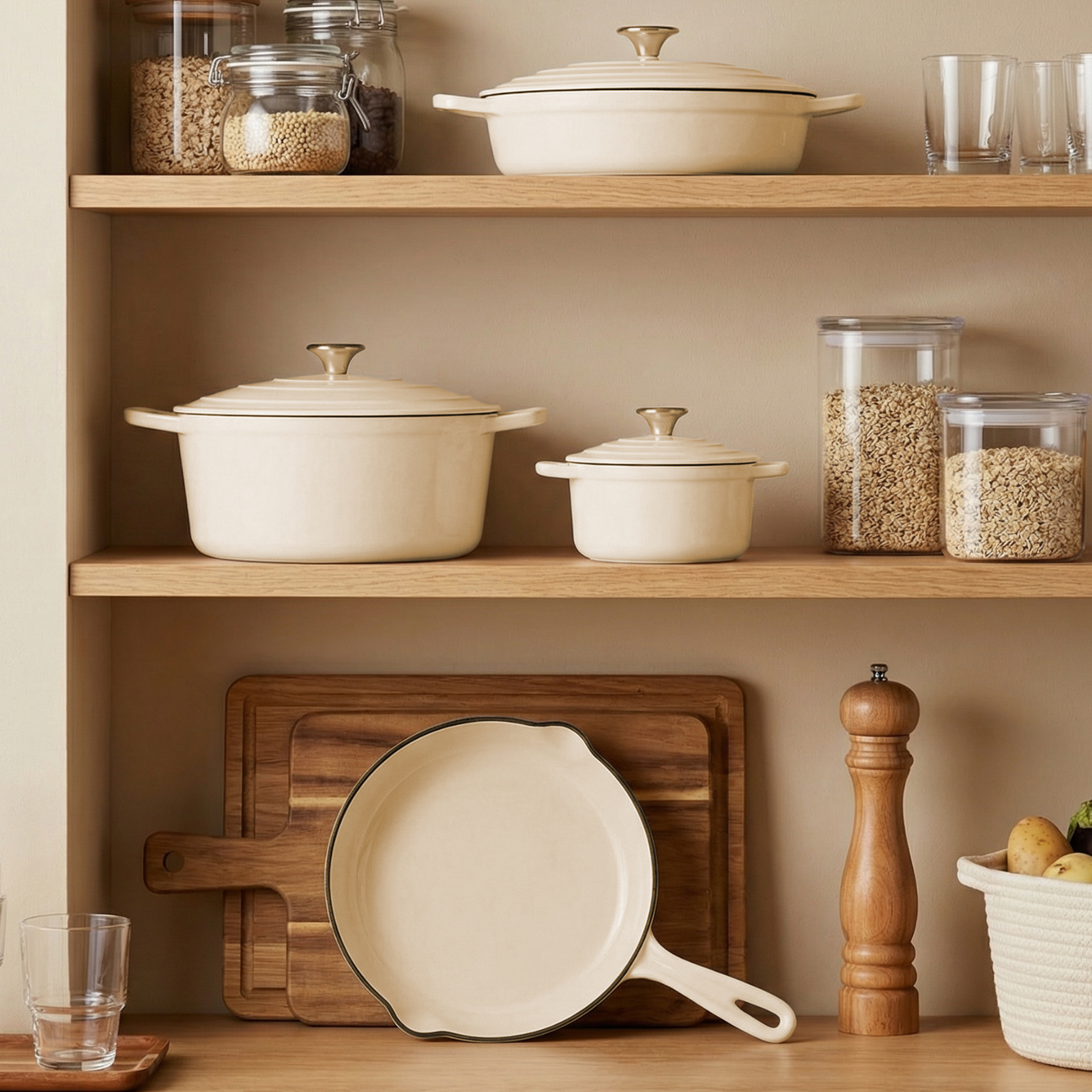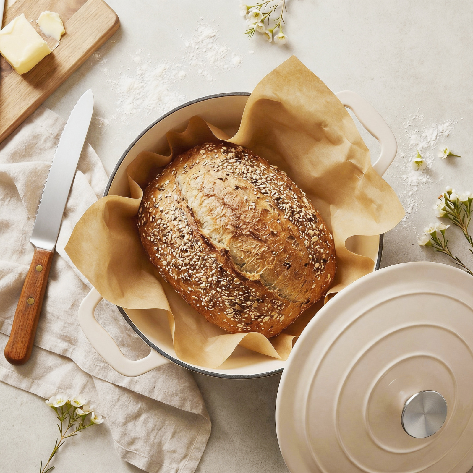 Støbejern varmes langsomt op, men holder på varmen længere, hvilket betyder, at din mad tilberedes og steges jævnt. Maden holder sig varm i lang tid, selv efter du har taget den ud af ovnen. En langsom tilberedningsproces og et tætsluttende låg er fantastiske funktioner. Dine retter bevarer deres smag og bliver perfekt tilberedt.